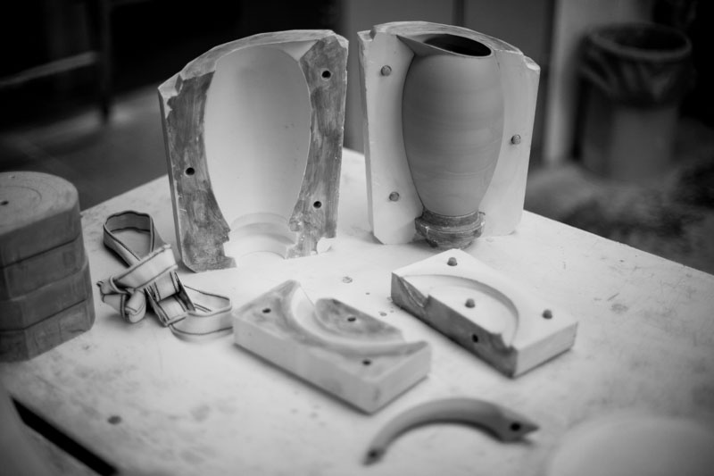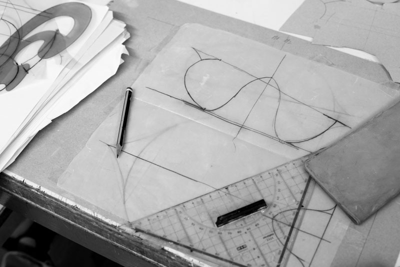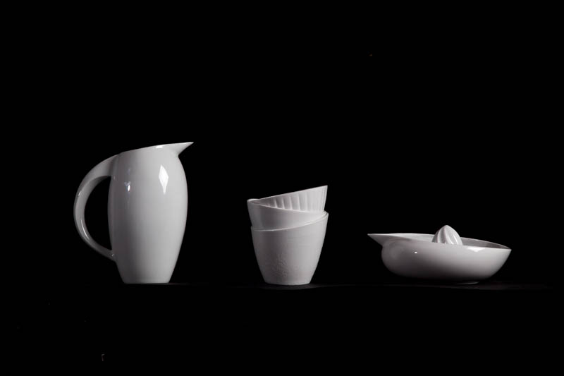Mit Porzellan zu arbeiten ist etwas Wunderbares, ... etwas Leidenschaftliches. In meinen Arbeiten mit Porzellan verbinde ich die Eigenschaften und Fähigkeiten einer Produktdesignerin, die Formen aus der Funktionalität ableitet mit meinem Blick als Fotografin, die auf Details, Licht- und Kantenführungen achtet. Ich beginne mit Zeichnungen, um Form und Proportionen festzulegen. (Im Bild ist eine Zeichnung von liMona im seitlichen Schnitt zu sehen.)